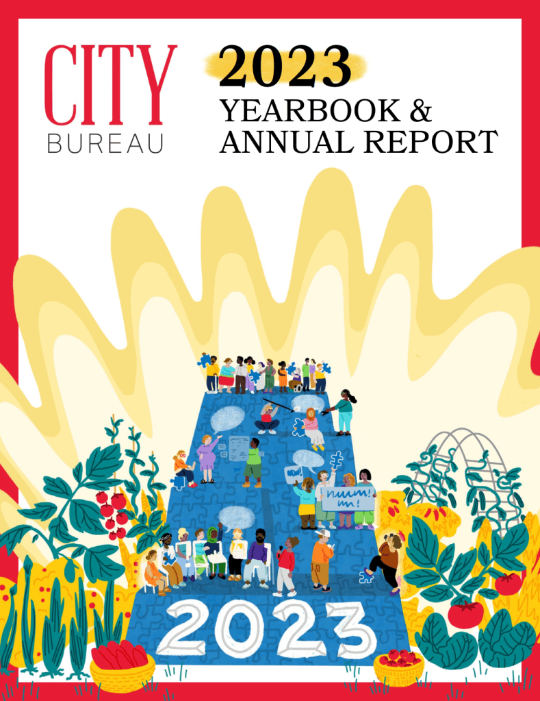 Illustration for Illinois Answers project investigative reporting. Economic mobility, sewage flooding in Cahokia Heights, and the Quantum Facility in South Shore,…